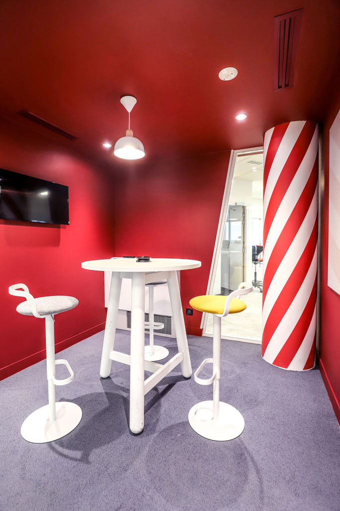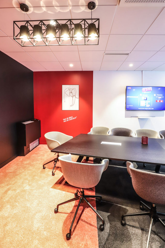 Ces espaces sont également l’occasion de mettre en avant les marques de TF1, à travers leurs thématiques stars. Que ce soit une ambiance assumée “TFOU” dans une salle de créa, ou des clins d’oeils au JT disséminés sur les murs, l’ADN de la marque est toujours présent.